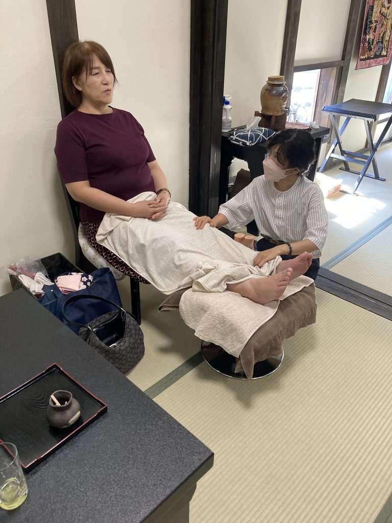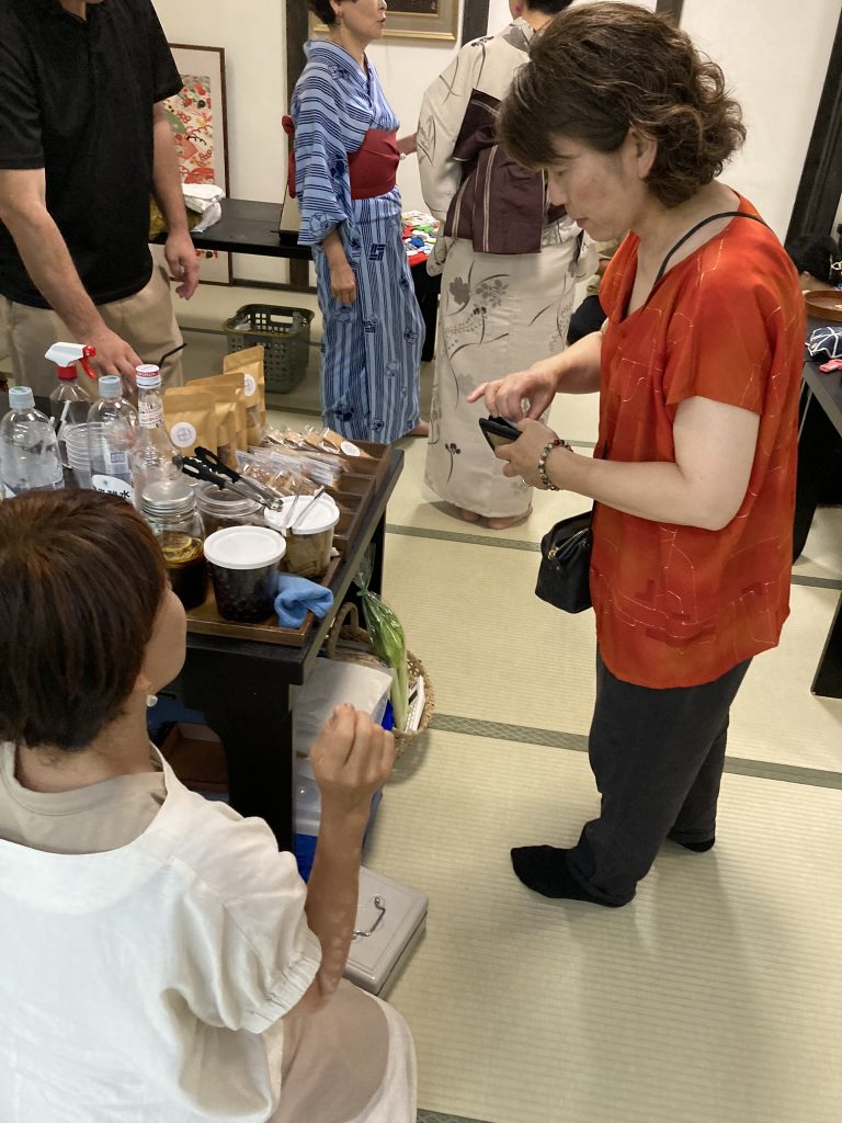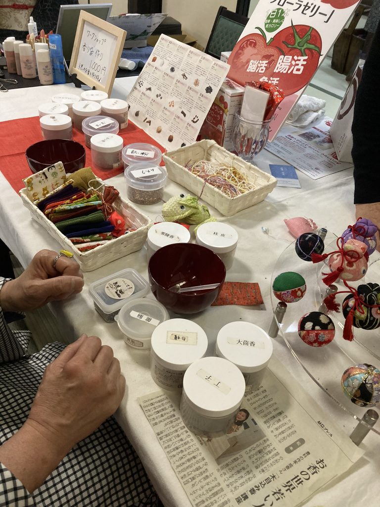 おいしいものあり、リラクゼーションあり、着物着付けレッスンや体験ありのプチマルシェを楽しみます。