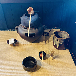 そんな素敵なロケーションの中、本格的な茶道具を使って、ご自身でお抹茶を点てていただきます。